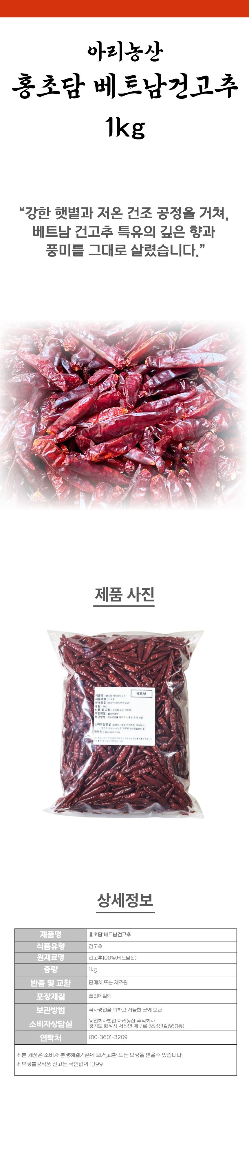 아리농산 베트남 건고추 1kg 건땡초 말린 고추