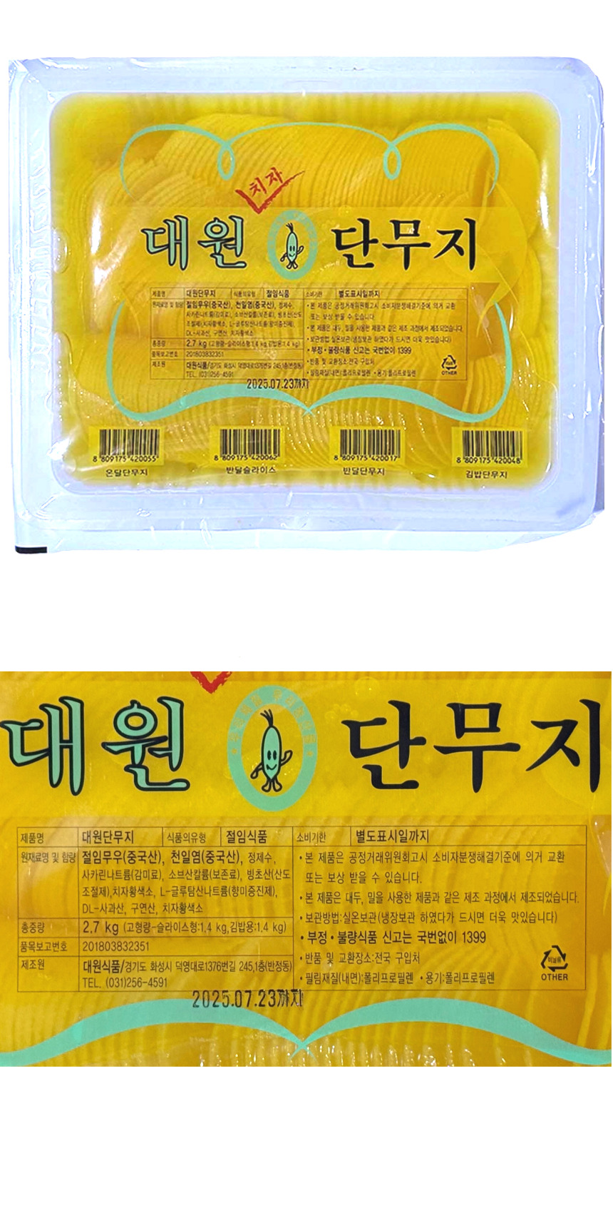 대원 단무지 (반달, 슬라이스, 2.7kg) 반달 슬라이스 단무지 이미지