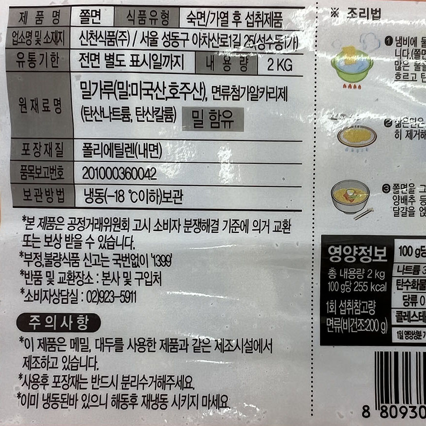 신천 쫄면 2kg 사리