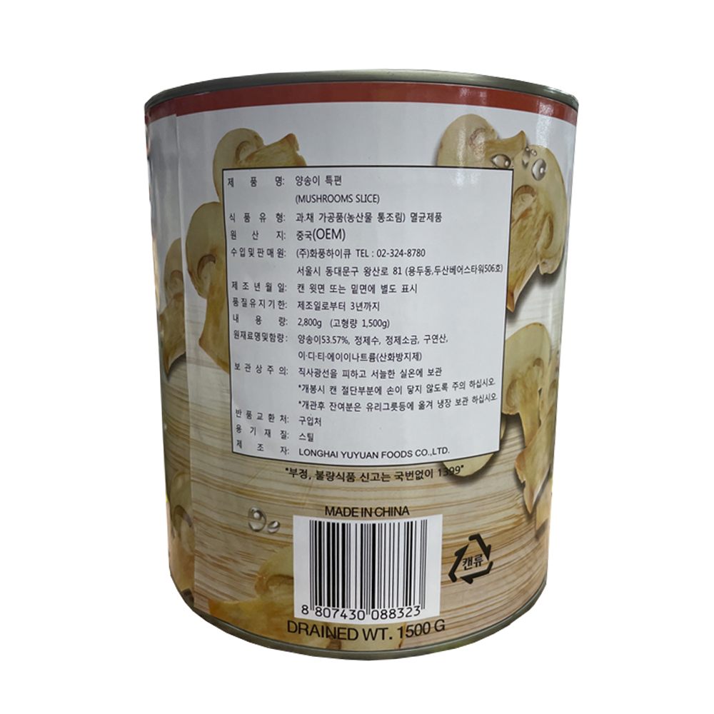 화풍 양송이 특편 2.8kg 캔