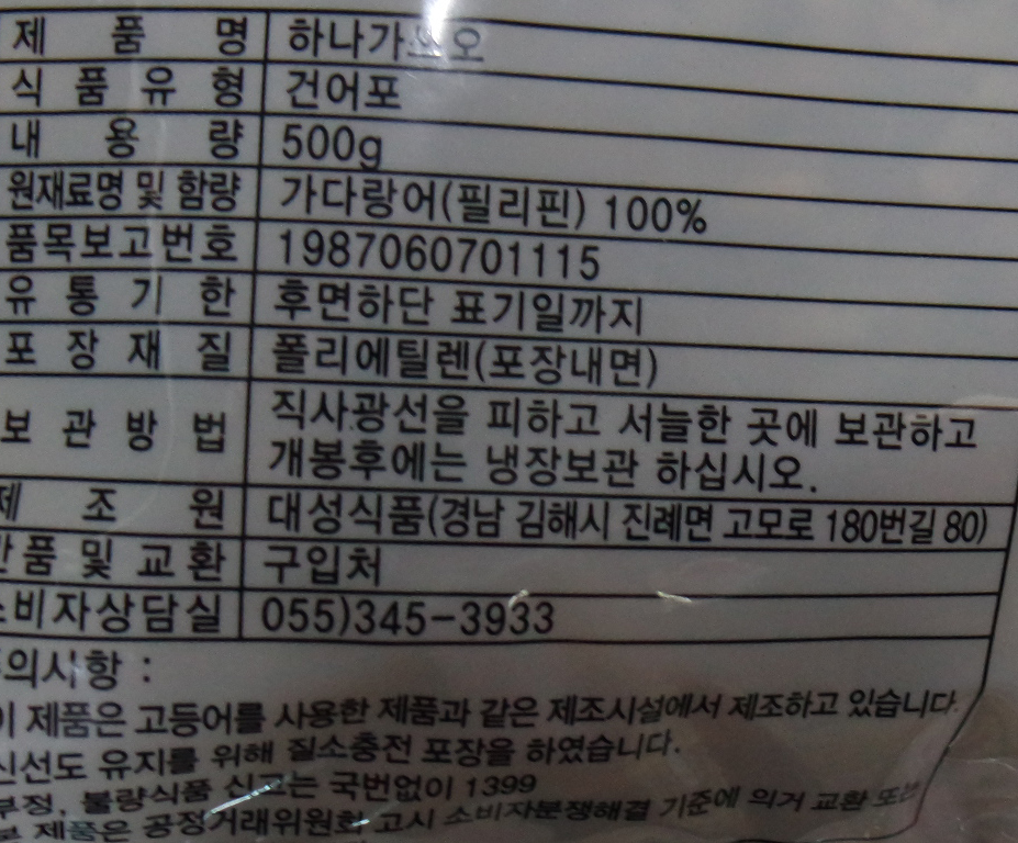 가스오부시(하나/국산/500g)/조미료
