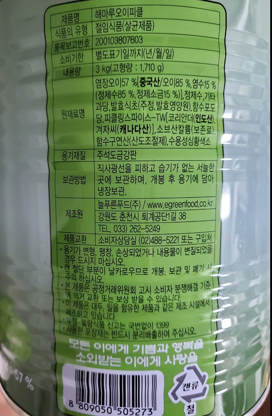 1캔 / 3kg