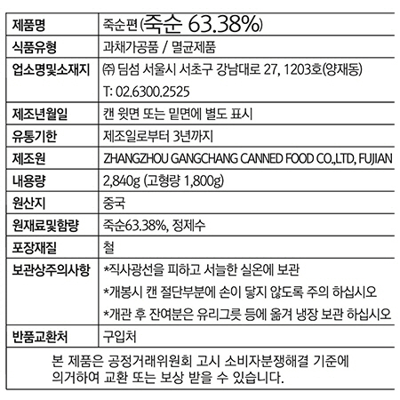 차이웰 죽순캔(직수입_편 2.84Kg/EA) 이미지