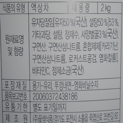 유자차(/고흥/꽃샘식품 2kg)병 이미지