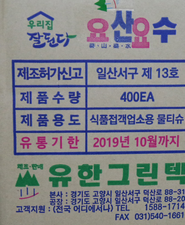 물수건(요산요수 400매) 이미지