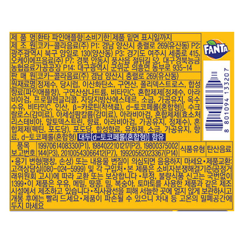 코카콜라 환타 파인애플(350ml*24EA/BOX) 이미지