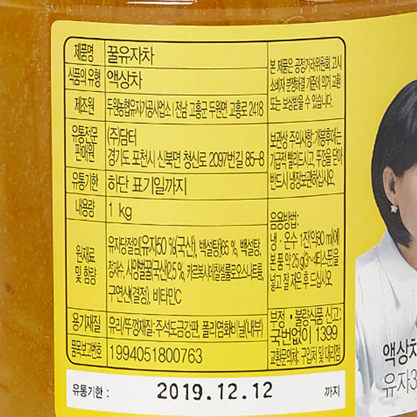 담터 꿀유자차(A 1Kg/EA) 이미지