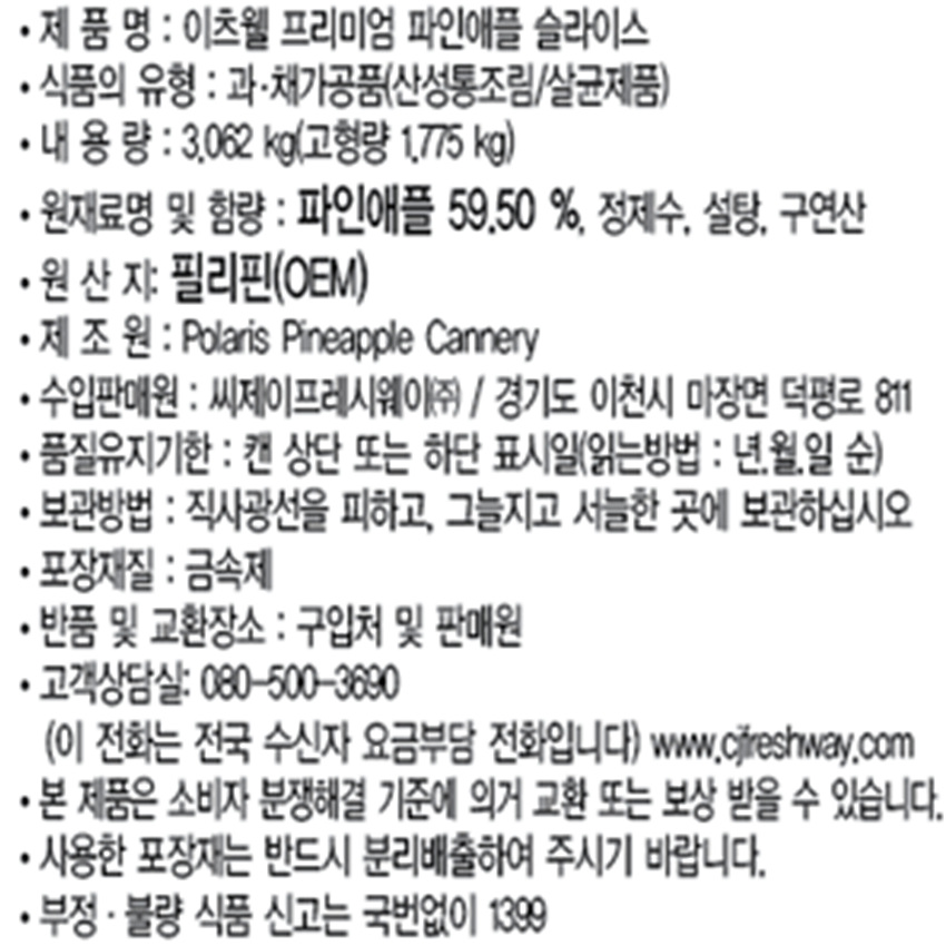 이츠웰 파인애플캔(프리미엄 슬라이스 3.062Kg/EA) 이미지