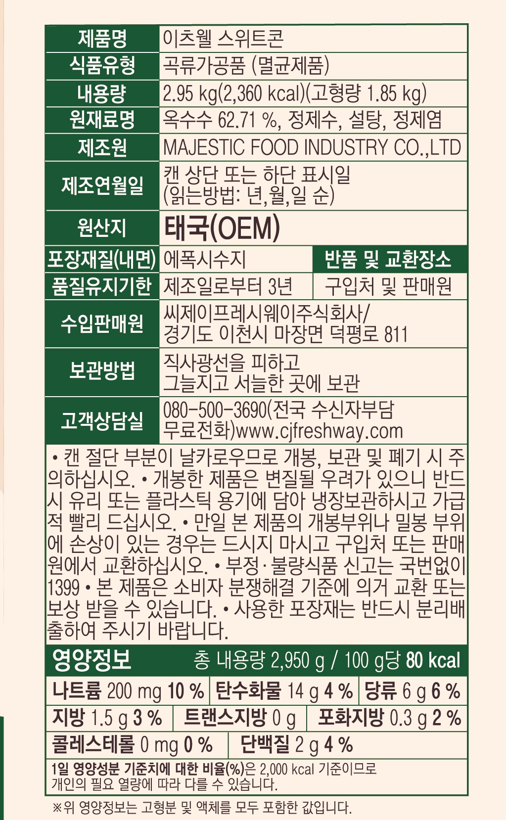 ★초특가★ 이츠웰 스위트콘(2.95Kg/EA) 업소용 대용량 옥수수콘 이미지