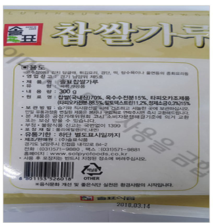 솔표 찹쌀가루(70% 300g/EA) 이미지