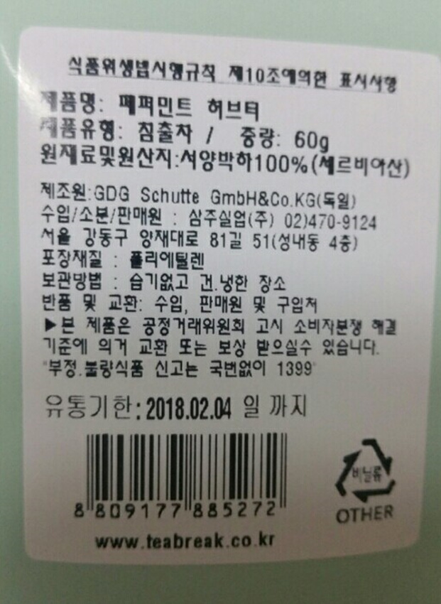 본 제품은 제품입고일별 유통기한 또는 품질유지기한이 상이하므로, 필요시 고객센터로 문의하여 주십시오. 제조일로부터 730일 까지