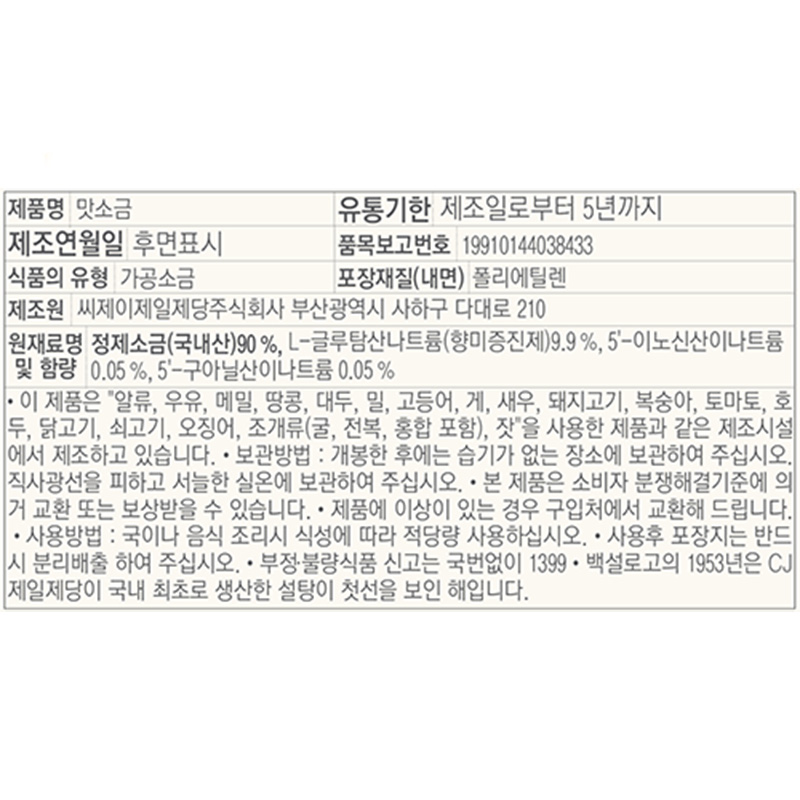 백설 맛소금(중간입자 5Kg/EA)