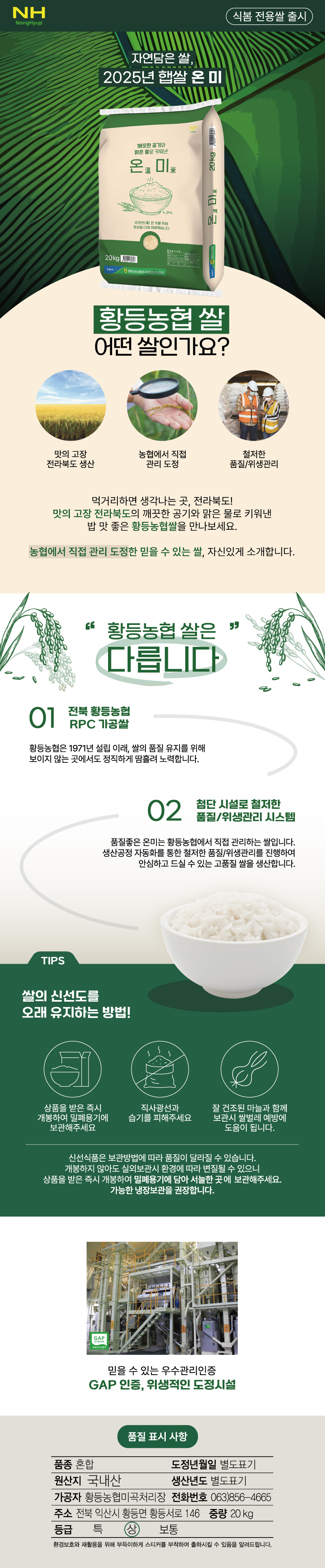 ♥첫구매♥ [25년산 햅쌀] 농협 온미 쌀20Kg 상등급 이미지