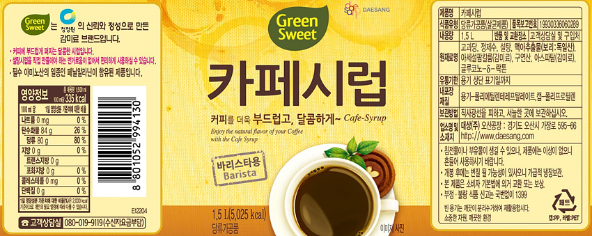 그린스위트 카페  시럽(갈색 1.5L/EA) 이미지