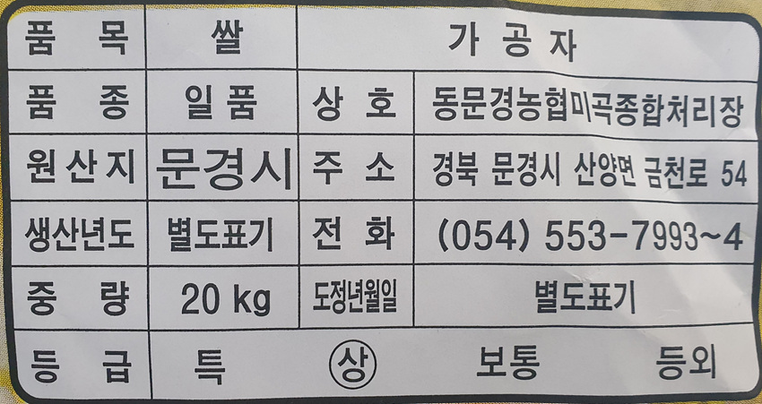 동문경농협 햇살열린미(일품 20Kg/EA) 일품미 일품쌀 상등급 쌀 백미 이미지