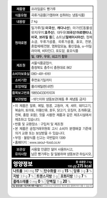 본 제품은 제품입고일별 유통기한 또는 품질유지기한이 상이하므로, 필요시 고객센터로 문의하여 주십시오. 제조일로부터 120일 까지