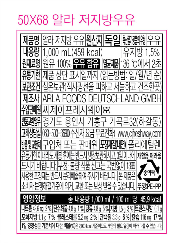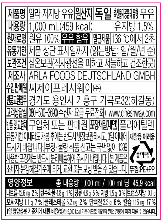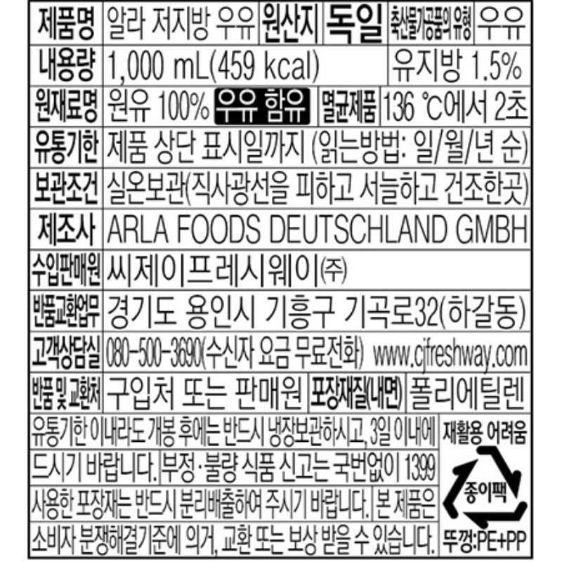 ★초특가★알라 흰우유(직수입_멸균_1.5% 1Kg/EA) 우유  이미지