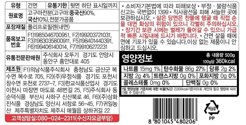 오뚜기 옛날당면(500g/EA) 당면