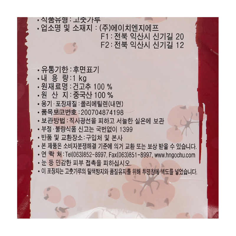 청결 청양고춧가루(중식용 1Kg/EA)/중국산 고추가루
