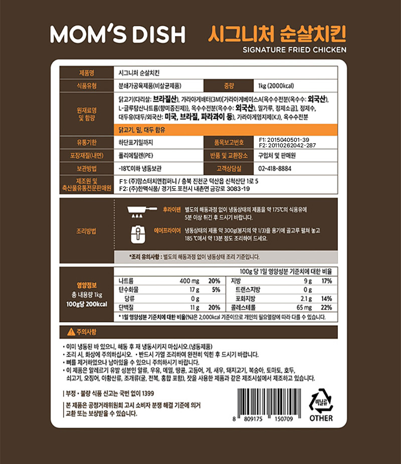 맘스터치 시그니처순살치킨(1Kg/EA)
