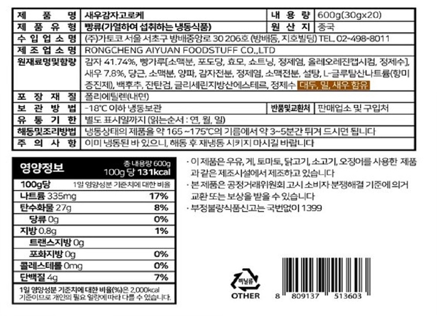 새우감자고로케(30g*20입 600g/EA) 이미지