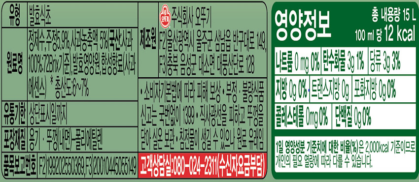 오뚜기 사과식초(NEW_15L/EA) 이미지