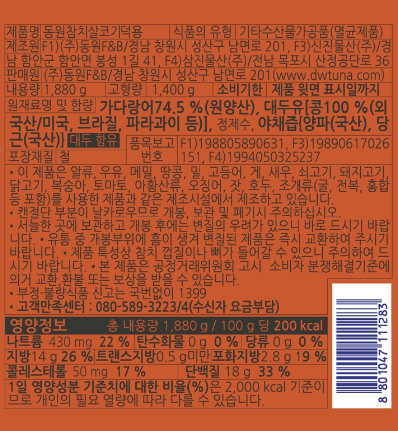 ★초특가★동원F&B 참치캔(스탠다드 1.88Kg/EA) 이미지