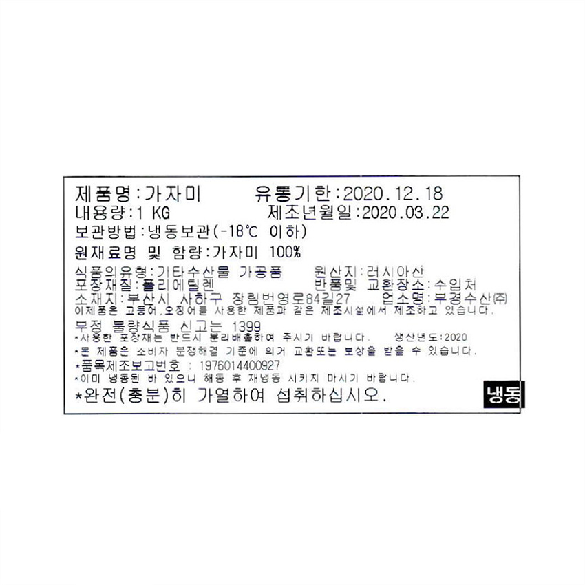 제조연월일(포장일 또는 생산연도)