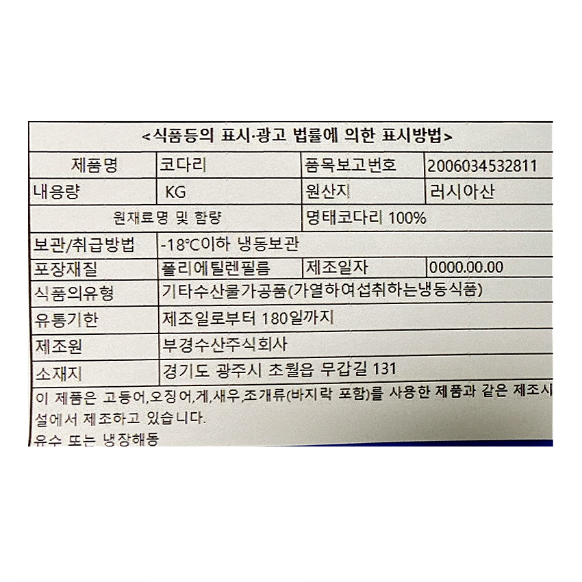 사랑해어 코다리(키즈용 순살_가시제거율95%_30~40g/토막 1Kg/EA)/러시아산 이미지