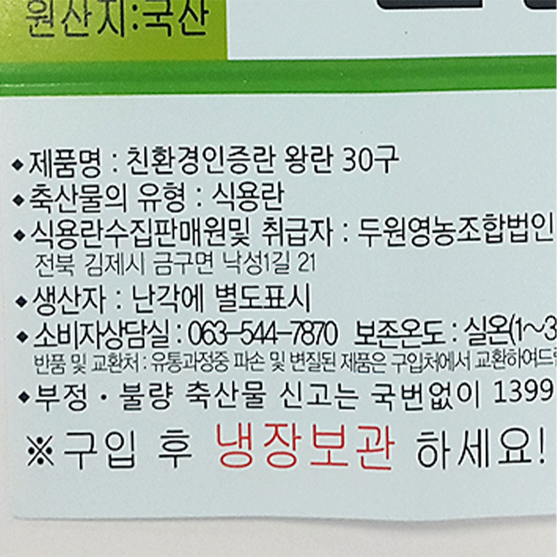 ★초특가★ 두원 계란(왕란_68g*30입 무항생제 2.04Kg/EA)/국내산
