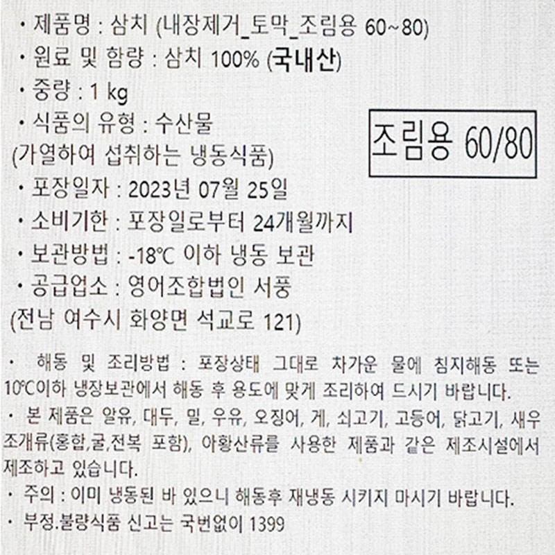 서풍 삼치(내장제거_60~80g/토막 조림용 1Kg/EA)/국내산 이미지