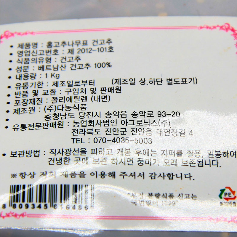 건월남고추(1Kg/PAC)/베트남산 이미지