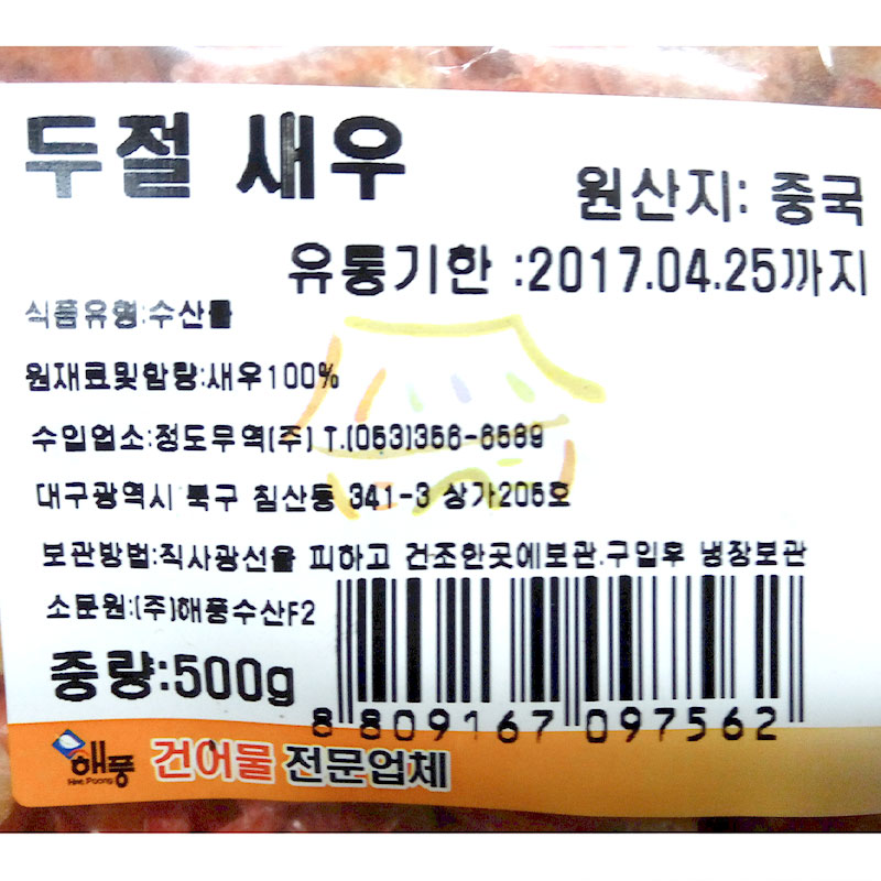 해풍수산 두절건새우(소 500g/EA)/중국산 이미지
