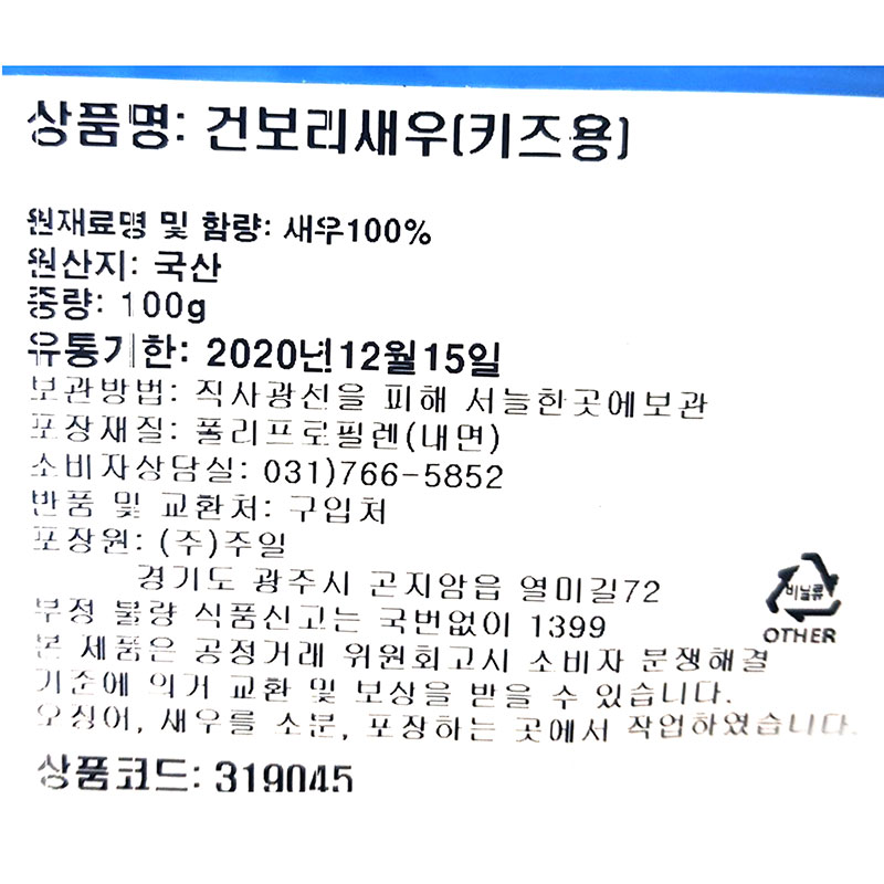 건보리새우(키즈용 100g/EA)/국내산 이미지
