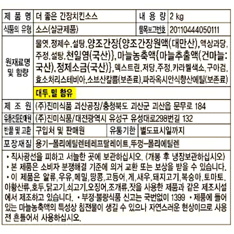 진미식품 더좋은간장치킨소스(2Kg/EA)