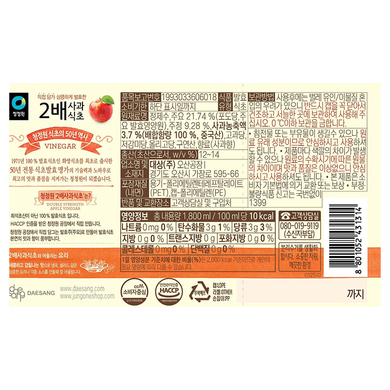대상 2배사과식초(1.8L 1.8Kg/EA)