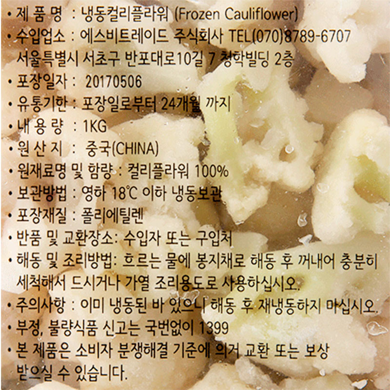 푸른원 냉동컬리플라워(1Kg/EA)/중국산 이미지