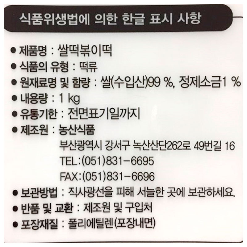 농산식품 쌀떡볶이떡(1Kg/EA)