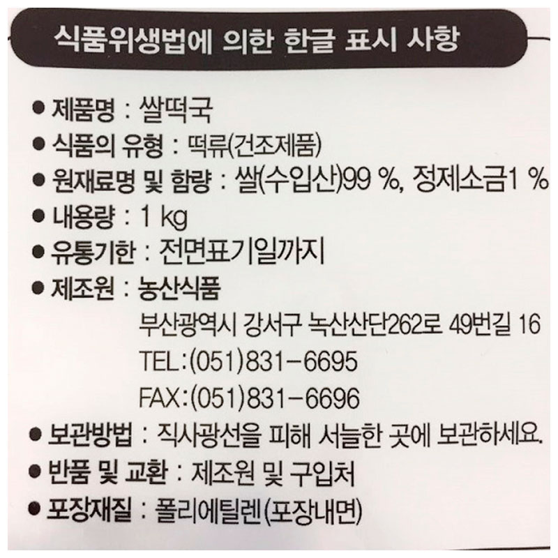 농산식품 쌀떡국떡(1Kg/EA) 이미지