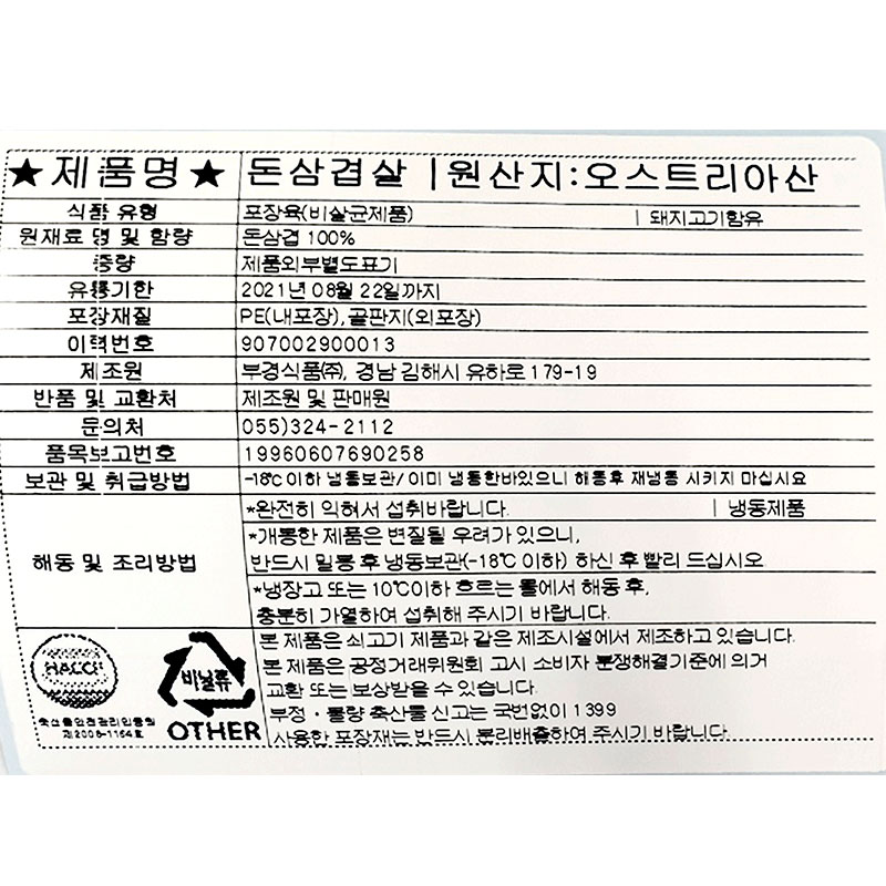 부경식품 돈삼겹(300±30g/개 대패삼겹용 300g/EA)/오스트리아산 이미지