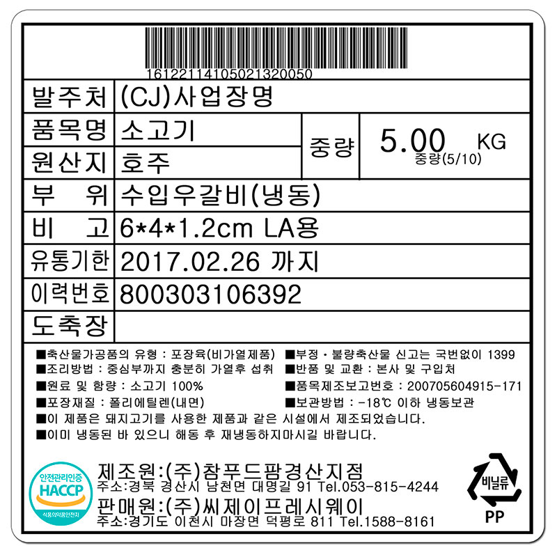 참푸드팜 소갈비(6*4*1.2cm LA용 KG)/호주산