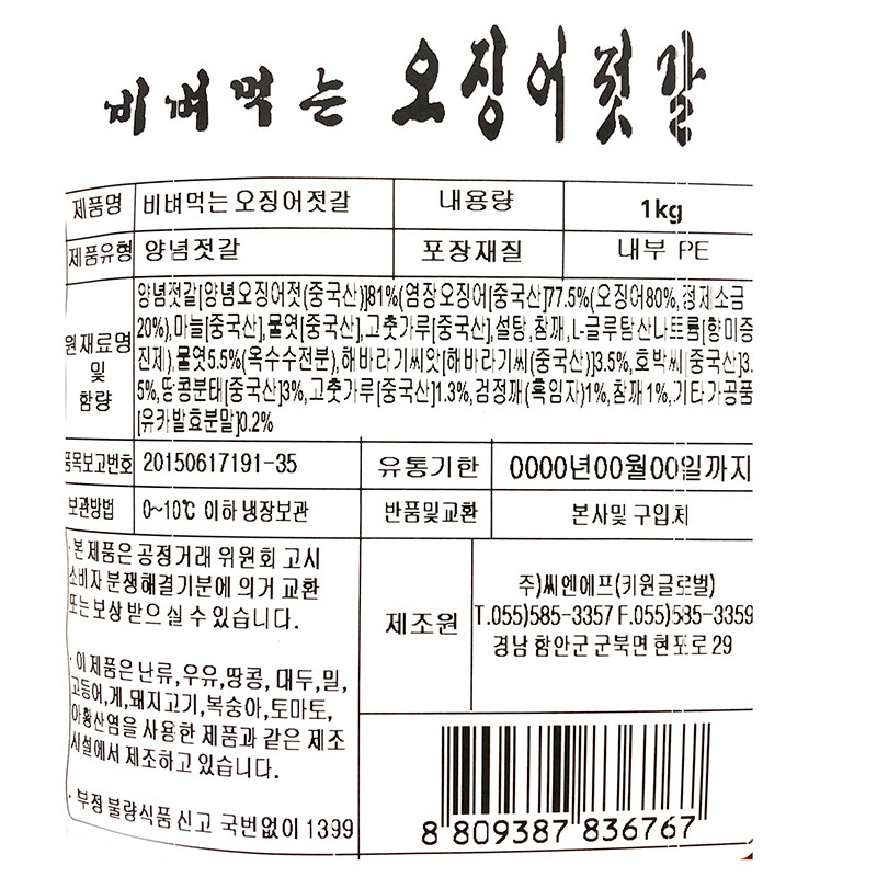 오늘의밥상 비벼먹는오징어젓갈(1Kg/EA)