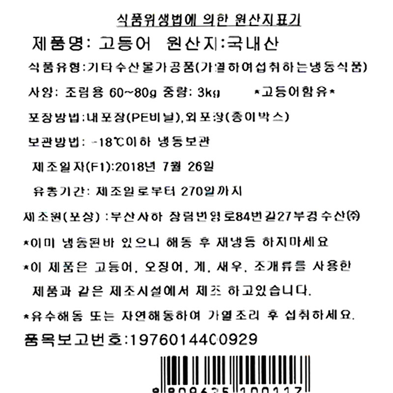 고등어(60~80g/토막 마트용_조림용 3Kg/EA)/국내산 이미지