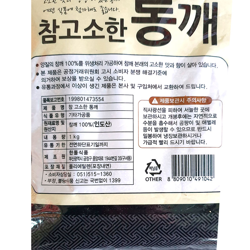 한톨식품 통깨(참고소한 1Kg/EA) 이미지