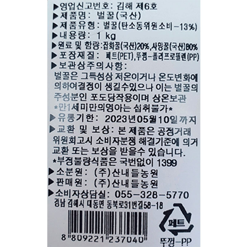 산내들 벌꿀(1Kg/EA)