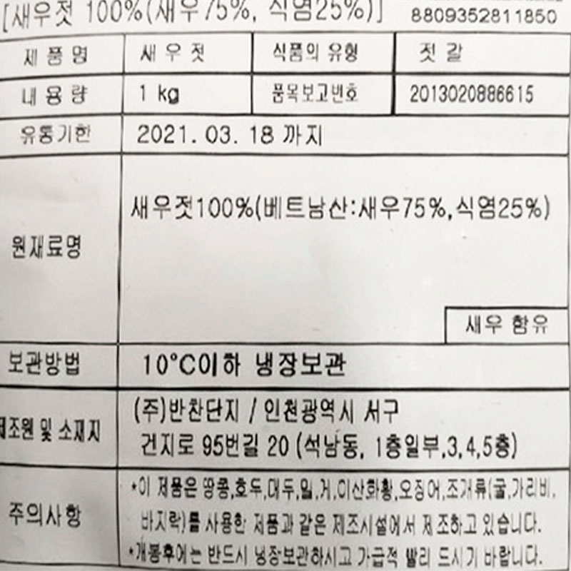 반찬단지 해양심층수새우젓(새우75% 1Kg/EA)
