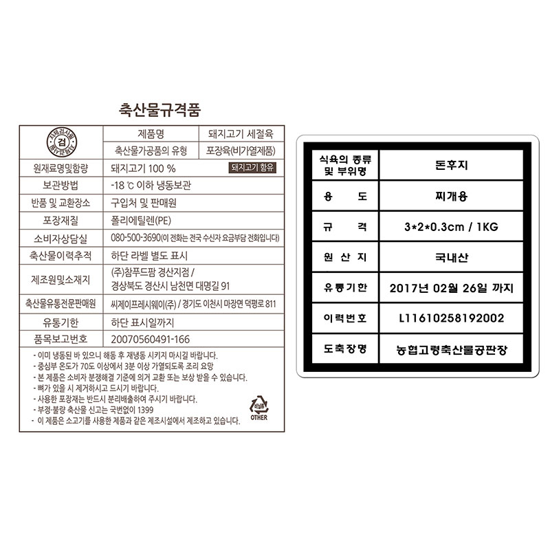 프레시웨이 돈뒷다리(참푸드팜_3*2*0.3cm 찌개용 1Kg/EA)/국내산 이미지