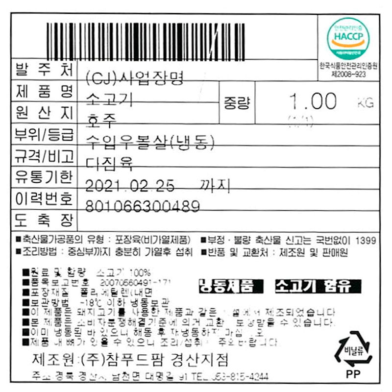 참푸드팜 소볼살(다짐육 KG)/호주산 이미지
