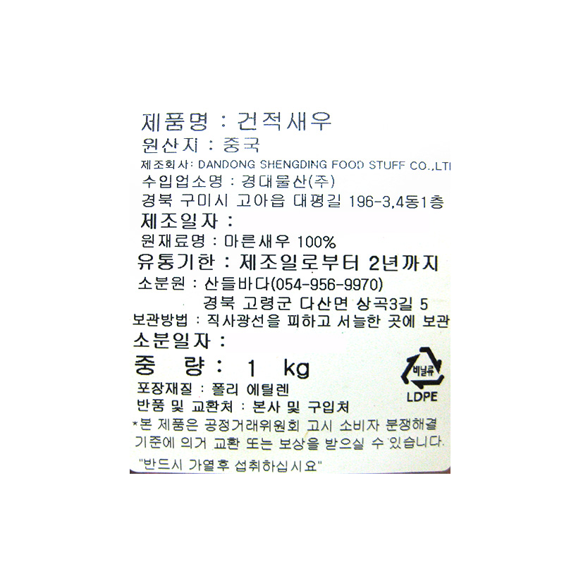 성주식품 건홍새우(통 1Kg/EA)/중국산 이미지