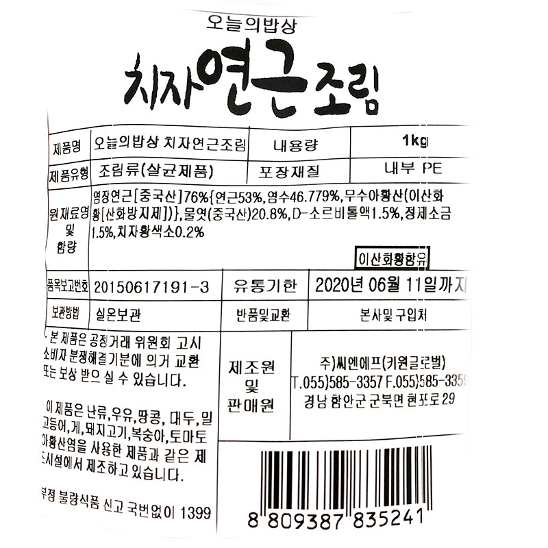 오늘의밥상 치자연근조림(1Kg/EA) 이미지